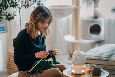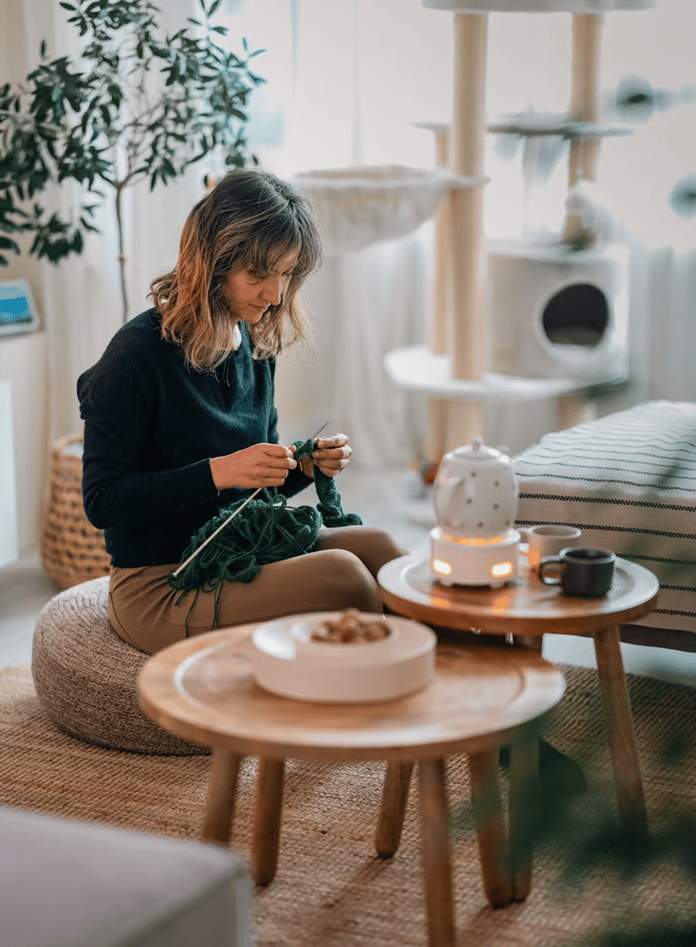 The rhythm of needles and thread — meditation in motion, creating warmth one row at a time.